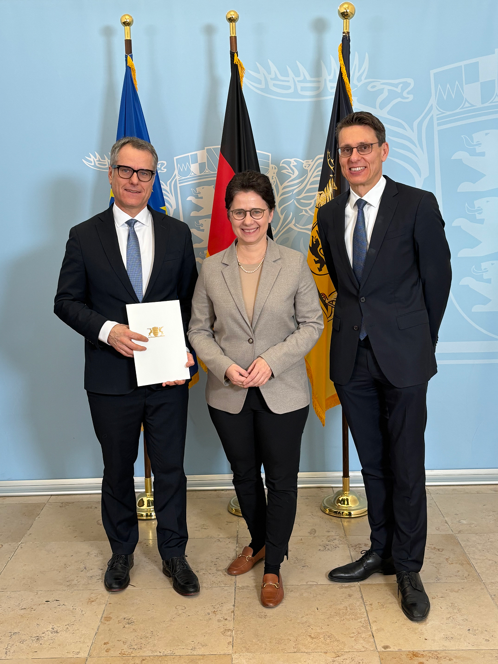 (Foto , v.l.n.r.): Präsident des Landgerichts Tübingen Dr. Andreas Holzwarth, Ministerin der Justiz und für Migration