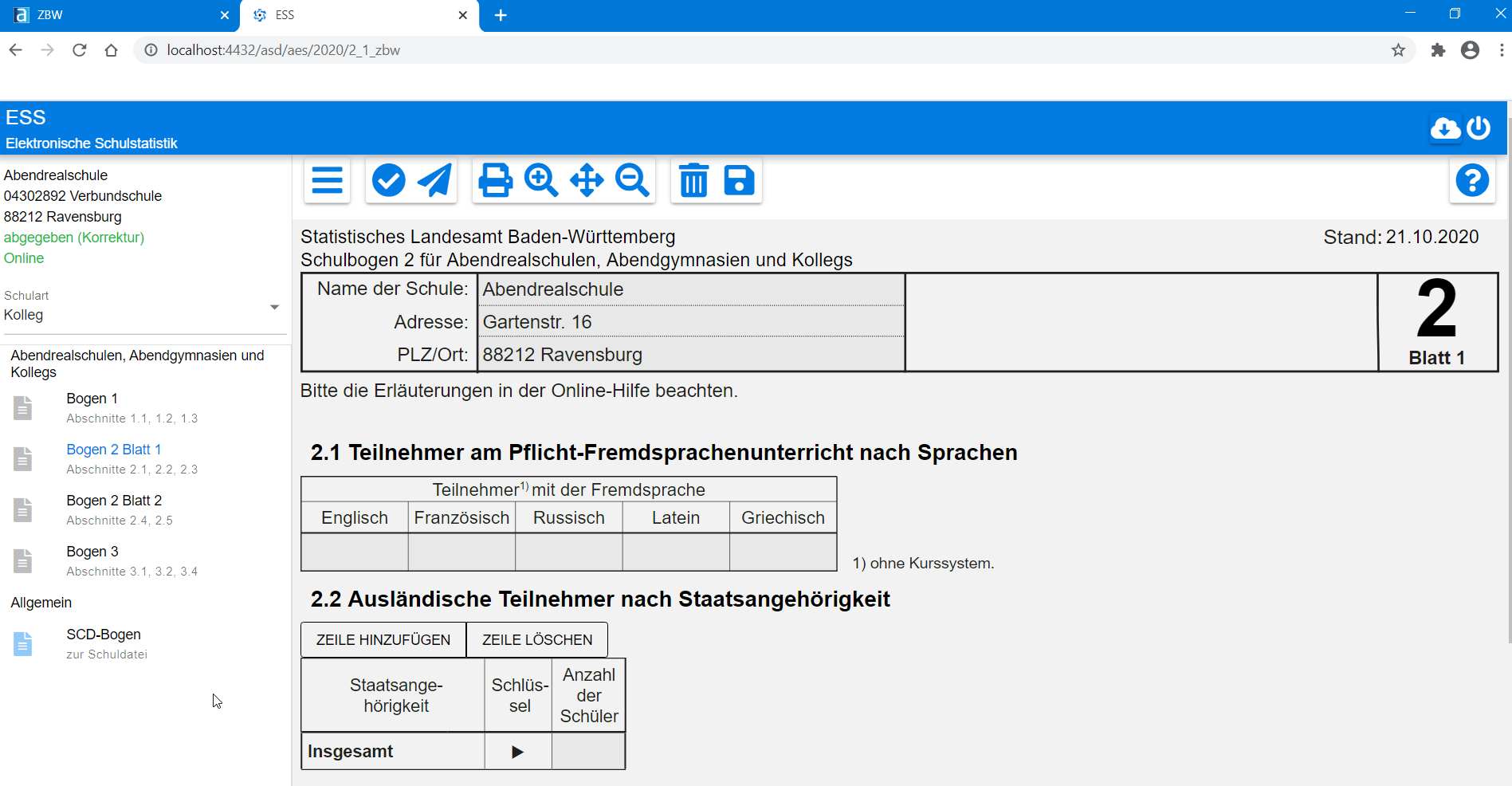 Daher sollte die ESS aus ASV für diese Schularten nur im manuellen Modus erfolgen. Alle Daten sind dann direkt auf den Masken einzugeben und im Anschluss elektronisch abzugeben.
